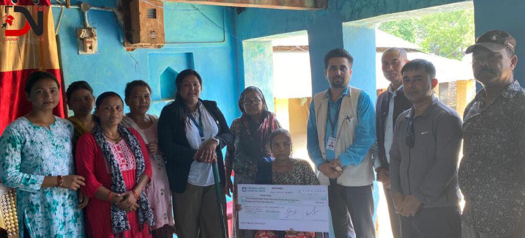 बिमित सुनारको घर खजुरा गाउपालिका –२ , एल गाउँ पुगेर २ लाख रूपैयाको चेक कम्पनिका क्षेत्रीय प्रबन्धक दिपक कुमार वलि मार्फत हस्तान्तरण गरेको हो ।