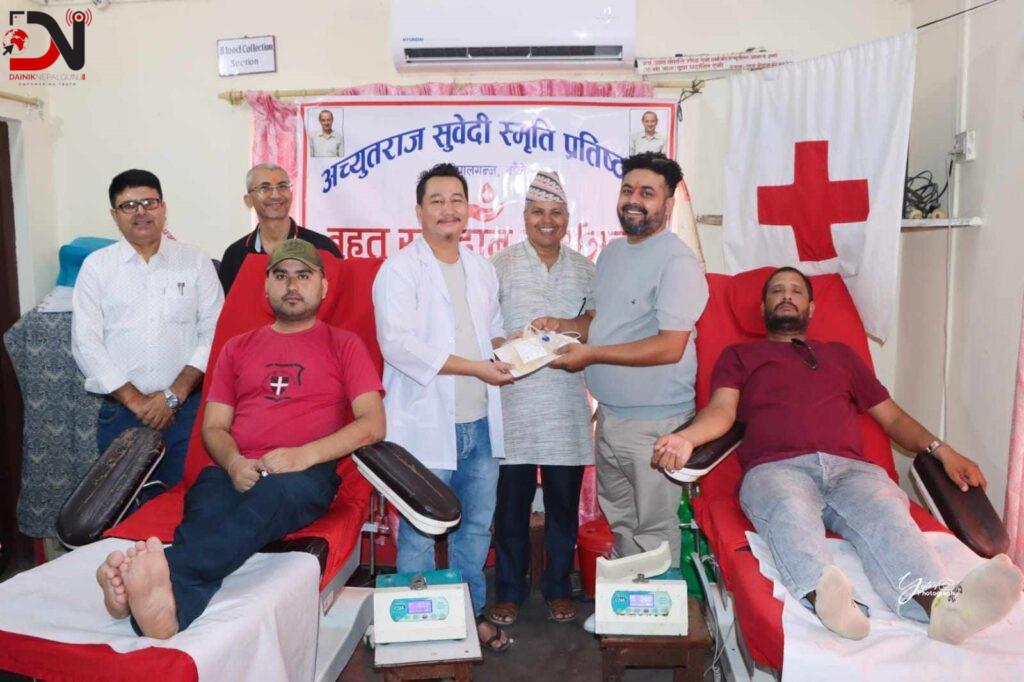 नेपालगन्ज स्थित रक्तदान केन्द्रमा आयोजना गरिएको रक्तदान कार्यक्रममा राजिव शर्मा, केशव गिरी, मोहन खड्का, रविन्द्र कटुवाल, श्याम रिजाल लगायत ३० जनाले रक्तदान गरेका छन् ।
