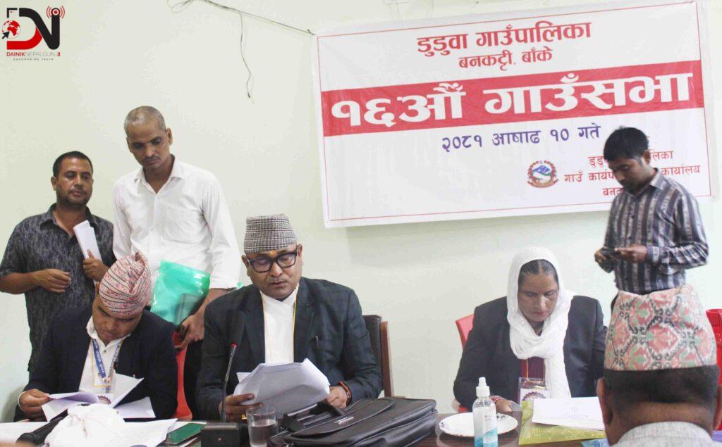 सभामा विधियेक समितिका संयोजक सम्सुद्दिन सल्मानीले डुडुवा गाउँपालिकाको आर्थिक विधियेक २०८१ प्रस्तुत गर्नु भएको थियो । सभामा वार्षिक नीति तथा कार्यक्रम र प्रस्तावित बजेट सर्बसम्मत रुपमा पारित भएको छ ।