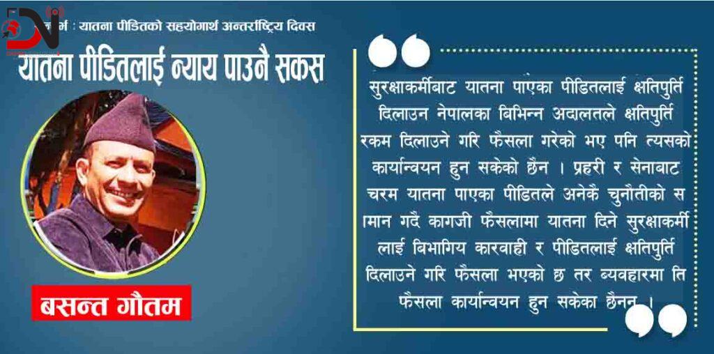 यातना मुद्धामा फैसलामा क्षतिपुर्ति मिल्छ ब्यहारमा मिल्दैन ः
