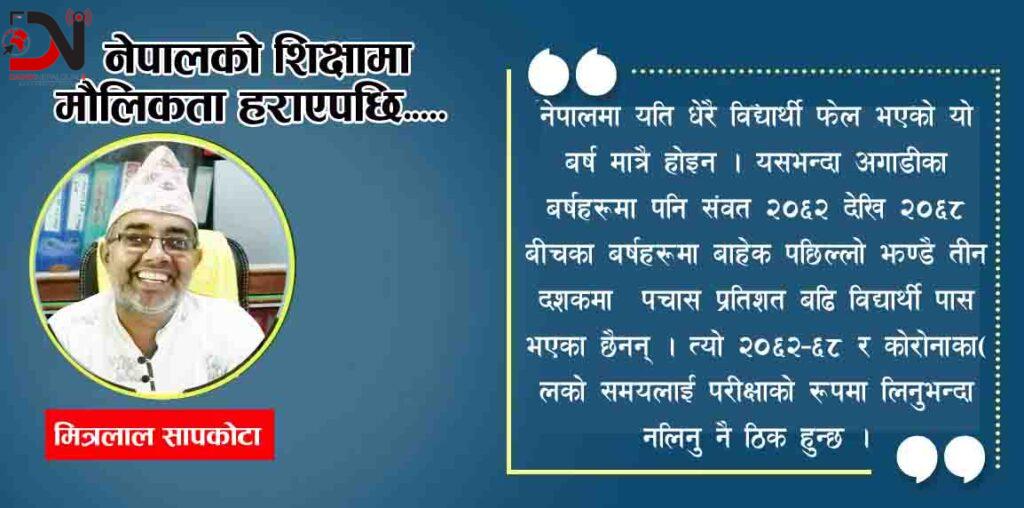 नेपालमा यति धेरै विद्यार्थी फेल भएको यो बर्ष मात्रै होइन । यसभन्दा अगाडीका बर्षहरुमा पनि संवत २०६२ देखि २०६८ बीचका बर्षहरुमा बाहेक पछिल्लो झण्डै तीन दशकमा पचास प्रतिशत बढि विद्यार्थी पास भएका छैनन् । त्यो २०६२–६८ र कोरोनाकालको समयलाई परीक्षाको रुपमा लिनुभन्दा नलिनु नै ठिक हुन्छ । यो सबैलाई थाह छ ।