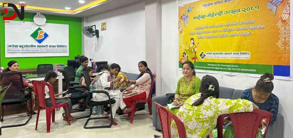नेपालगन्जमा रहेको भरोसा बहुउद्देश्यीय सहकारी संस्था लिमिटेडले महिलाहरुको लागि मेहेन्दीमा सजिएर श्रावण मनाऔं भन्ने नाराका साथ भरोसा मेहेन्दी उत्सव २०८१ को आयोजना एक कार्यक्रमका साथ सुरुवात गरेको छ ।
