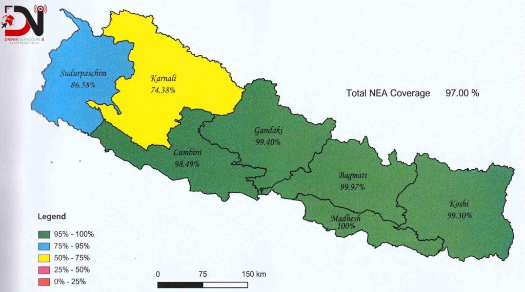 - मुलुकका ५ सय ३९ स्थानीय तह पूर्ण विद्युतीकरण भएका छन् । ७ सय ५३ स्थानीय तहमध्ये १ सय ९६ मा आंशिक विद्युतीकरण भएको नेपाल विद्युत् प्राधिकरणले जनाएको छ ।