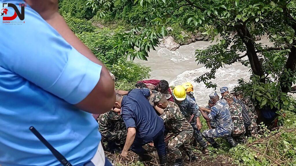 अहिले सशस्त्र प्रहरी बलको गोताखोर टोलीले घट्नास्थलमा यात्रुको उद्धार गरिरहेको छ । यात्रुको उद्धारका लागि १० जनाको गोताखोर टोली घट्नास्थलमा परिचालन गरिनुका साथै उनीहरुलाई अस्पताल लैजाने कार्य जारी रहेको सशस्त्र प्रहरीका सहप्रवक्ता एवं प्रहरी नायव उपरीक्षक शैलेन्द्र थापाले जानकारी दिनुभयो । अप्ठ्यारो भीर भएका कारण घाइतेको उद्धारमा कठिनाइ भइरहेको उहाँले बताउनुभयो । उद्धार कार्यमा नेपाली सेना, नेपाल प्रहरी र सशस्त्र प्रहरी बल खटिएको छ । बसमा झण्डै ४० भारतीय यात्रु सवार रहेको बताइएको छ ।