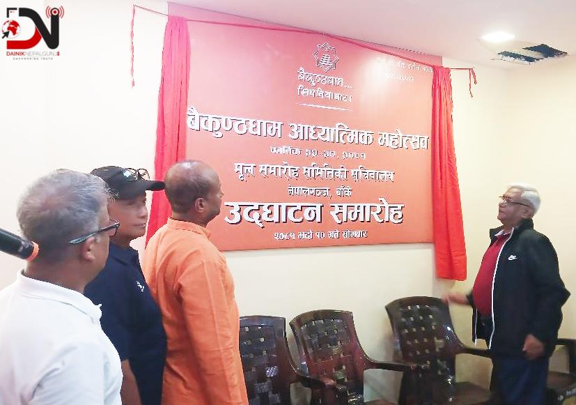 नेपालगन्ज उपमहानगरपालिकाका प्रमुख विष्टले सचिवालयको उद्घाटन गर्दै बैकुण्ठधाम निर्माणका लागि सबैले सहयोग गर्न आवश्यक रहेको बताए । उनले बैकुण्ठधाम निर्माणका लागि सक्दो सहयोग गर्ने प्रतिबद्धता जनाएका थिए ।