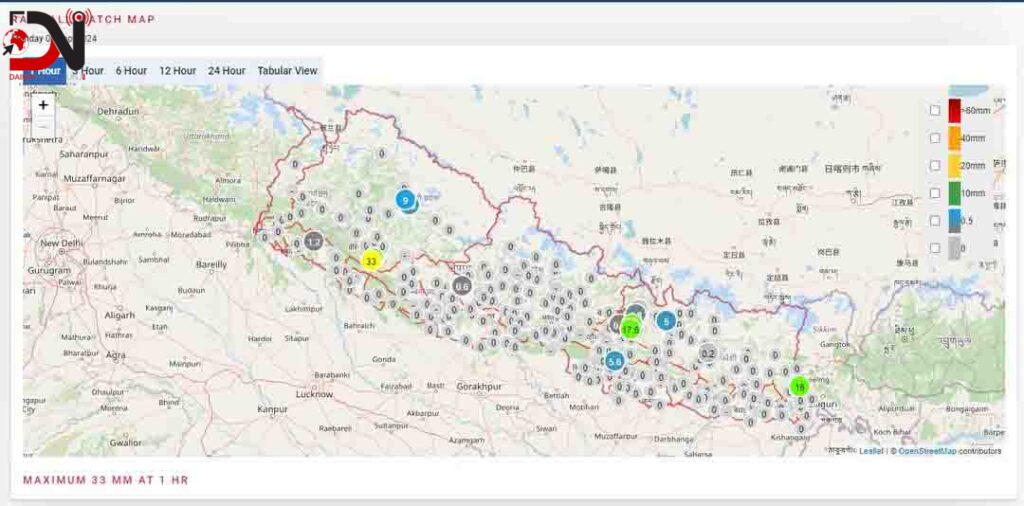 त्यसैगरी आज राति देशभर आंशिकदेखि साधारणतया बदली रहने छभने गण्डकी, लुम्बिनी र सुदूरपश्चिम प्रदेशका केही स्थानमा मेघगर्जन र चट्याङसहित हल्कादेखि मध्यम वर्षाको सम्भावना छ । कोशी, गण्डकी, लुम्बिनी र सुदूरपश्चिम प्रदेशका एक–दुई स्थानमा भारी वर्षाको पनि सम्भावना रहेको छ ।
