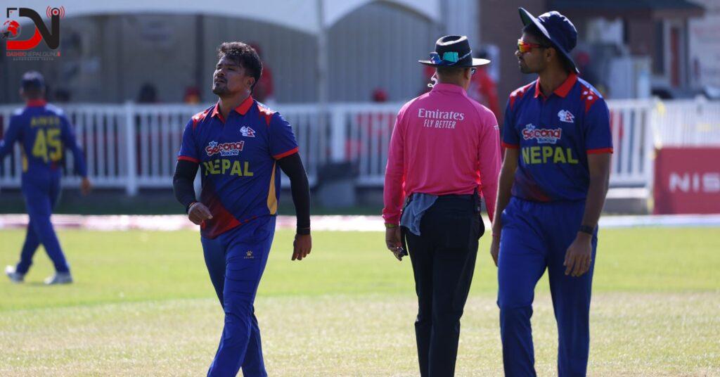 यसैगरी, नवनीत धालिवालले ४८, डिलोन हेलिगर ३०, हर्ष थाकेर २७ रन जोड्दा परगत सिंह र साद बिन जाफरले समान १७ ÷१७ रन बनाए । त्यस्तै, आरोन जोनसनले १० रन बनाए । नेपालका सोमपाल कामी र ललित राजवंशीले समान दुई–दुई विकेट लिएभने सन्दीप लामिछाने, गुलशन झा र रोहित पौडेलले समान एक–एक विकेट लिए । अब नेपालले भोलि ओमानसँग खेल्नेछ ।