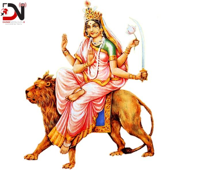 कात्यायनीको प्रतिमा लक्षणमा शार्दूल वाहन भएकी, दानव घातिनी, हातमा खड्ग लिएकी, एउटा चुल्ठो भएकी, कानमा जपापुष्प (एक प्रकारको फूल) तथा यार्लिङ लगाएकी, गधामा बसेकी, नग्न, ठूलठूला ओठ भएकी र शरीरमा तेल घसेकी हुन्छिन् भनेको पाइन्छ । यस्ती देवीको आज विशेष पूजा आराधना गरिन्छ । नवरात्रको पहिलो दिन यही असोज १७ गते बिहीबार दसैँ घर वा पूजा कोठामा वैदिक विधिपूर्वक घटस्थापना गरी जौको जमरा राखिएको थियो । त्यसै दिन घटस्थापना गरिएको स्थानमा नौ दुर्गामध्येकी पहिलो देवी शैलपुत्रीको आह्वान गरी विधिपूर्वक पूजा आराधना गरियो ।