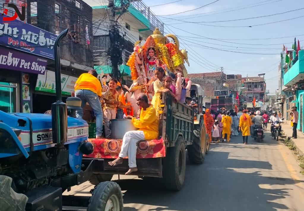 ट्रक, ट्याक्टरलगायत सवारीसाधनमा मूर्ति राखेर लावालस्करसहित बाजागाजा बजाएर नाँचगान गर्दै मूर्ति विसर्जन गरिएको दुर्गापूजा समिति फुल्टेक्राका अध्यक्ष चन्देश्वरराज त्रिपाठीले बताउनुभयो ।