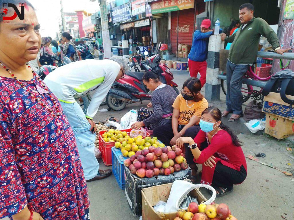 नेपालगन्जको धम्बोझीमा तिहारलाई लक्षित गरेर अहिले पनि कर्णालीको स्याउ किनबेच गर्नेको भीडभाड हुने गरेको छ । नेपालगन्जको धम्बोझी चोकमा कर्णालीकै महिलाहरुले असोजको पहिलो हप्तादेखि नै स्याउको बिक्री–वितरण गर्दै आउनुभएको छ । जुम्लाको सिँजा गाउँपालिकाबाट नेपालगन्जमा स्याउ बिक्री गर्न आउनुभएकी शीतली रोकायले दैनिक २५ देखि ३० किलोसम्म स्याउ बिक्री गर्ने गरेको बताउनुभयो । अन्य बेलाभन्दा दसैँ–तिहारको बेला स्याउ धेरै बिक्री हुने गरेको उहाँको भनाइ छ । नेपालगन्जका अन्य फलफूल पसलमा समेत उपभोक्ताले कर्णालीकै स्याउ किन्ने गरेका छन् । नेपालगन्जको त्रिवेणी मोडस्थित पुरानो फलफूल पसल महाराजा फ्रुटका सञ्चालक कमल सुनारले यो वर्ष कर्णालीको स्याउले भारतीय र चाइनिज स्याउलाई जितेको बताउनुभयो । उहाँले आफ्नो पसलमा आउने उपभोक्ताले कर्णालीको स्याउ नै खोज्ने गरेको बताउनुभयो । यो दसैँमा कर्णालीको स्याउ अन्य समयको तुलनामा तीन गुणा बढी बिक्री भएको छ । बाहिरबाट आउने स्याउको तुलनामा कर्णालीको स्याउ स्वादिलो र सस्तोसमेत भएकाले उपभोक्ताको रोजाइमा परेको सुनारले उल्लेख गर्नुभयो ।