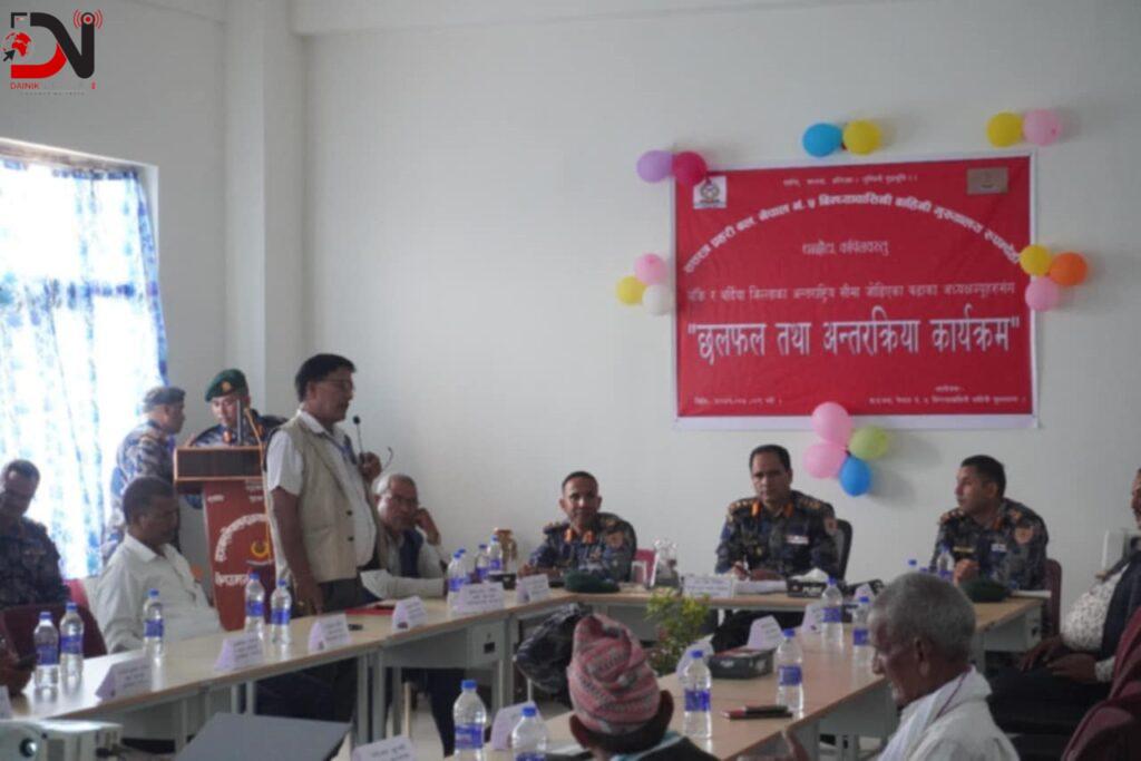 अध्यक्षहरुसंग सीमा ईलाकाहरुमा हुन सक्ने लागुऔषध ओसारपसार, चोरीपैठारी नियन्त्रण, मानवबेचबिखन, सीमामा हुने अपराधी गतिबिधी, साम्प्रदायिक तथा धार्मीक सद्भाव अधिबृद्री अवैध हातहतियार ओसारपसार सशस्त्र प्रहरी बल नेपालसंग सीमाबासिले राखेको अपेक्षाका बिषयमा अन्तरक्रिया समेत गरियाे ।
