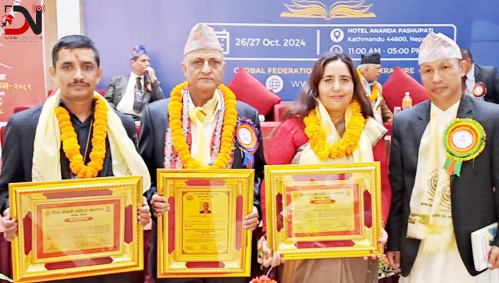नेपाली साहित्यको विश्वव्यापीकरण हाम्रो अभियान भन्ने मूल मर्मका साथ काठमाडौँको गौशालास्थित होटल आनन्द पशुपतिको सभाहालमा सञ्चालित तेस्रो बृहत साहित्यिक विश्व सम्मेलन २०८१ मा बाँकेका तीन स्रष्टा सम्मानित भएका छन् ।