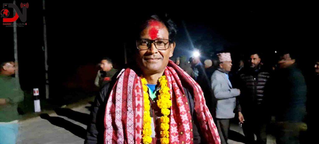 नेकपा माओवादीका शेर बहादुर थारुले ६७८ मत, नेकपा एकालेका विष्णुप्रसाद देवकोटाले ३३७ मत, नागरिक उन्मुक्ति पार्टिका प्रितिलाल थारुले ७० मत, राप्रपाका रत्न बहादुर शाहीले ५२ मत र रास्वपाका बासुदेव शर्माले १७ मत प्राप्त गरेका छन् ।