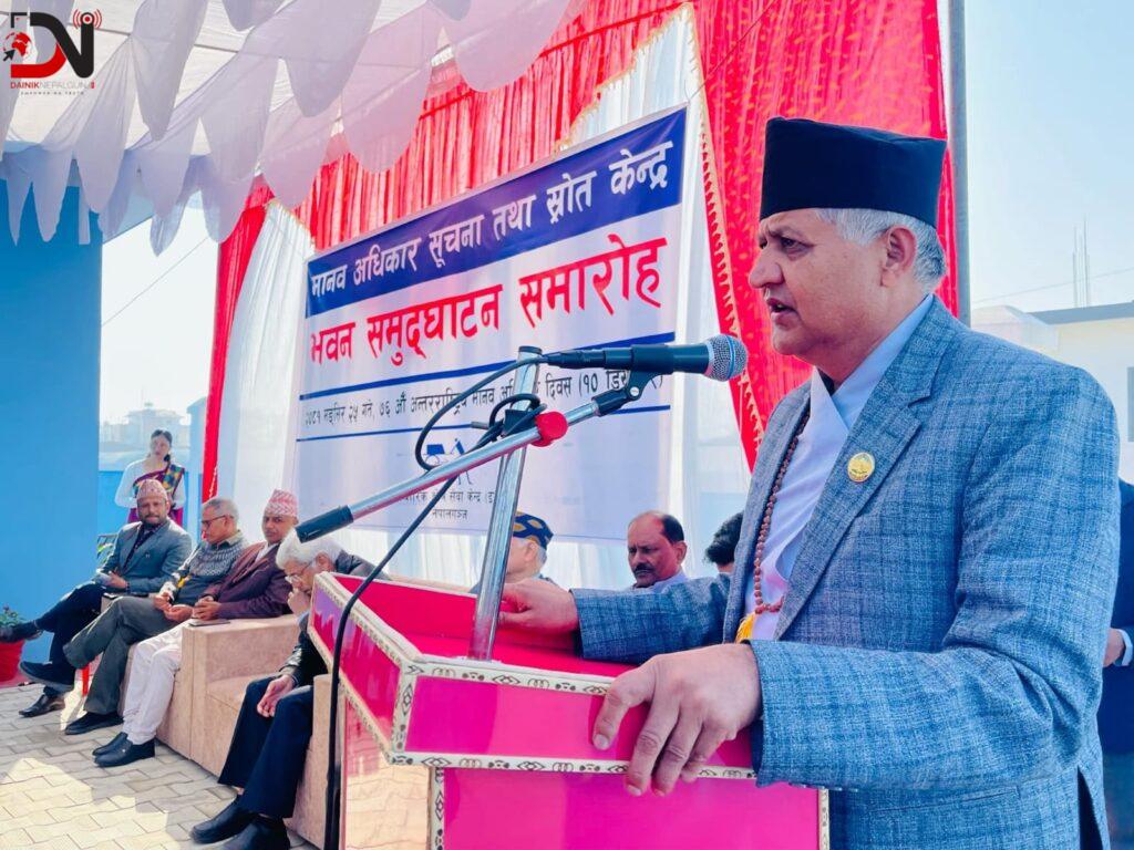 भवन उद्घाटन कार्यक्रमलाई सम्वोधन गर्दै मुख्यमन्त्री आचार्यले मानव अधिकारको रक्षा र प्रवर्द्धन गर्न प्रदेश सरकार प्रतिबद्ध रहेको बताउनु भयो । उहाँले समाजमा रहेका हरेक व्यक्तिलाई समान अवसर र सम्मानपूर्वक जीवनयापनको वातावरण सृजना गर्न प्रदेश सरकार प्रतिबद्ध रहेको बताउनु भयो । न्यायपूर्ण र समतामूलक समाज निर्माणकोलागि साझा एक्यबद्धता आवश्यक रहेको र त्यसकालागि प्रदेश सरकारले समन्वयको भूमिका निर्वाह गर्ने समेत स्पष्ट पार्नु भयो ।