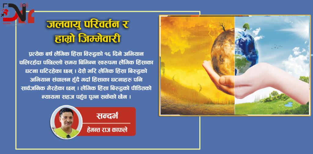 नेपाल जस्ता हिमालयीय देशमा जलवायु परिवर्तनको असर अझ गम्भीर रूपमा देखिएको छ । हिमालयका हिमनदीहरू पग्लिनु, प्राकृतिक स्रोतहरूको क्षय हुनु, र बाढीपहिरो जस्ता घटनाहरूले यहाँको कृषि, जनजीवन, र जैविक विविधता संकटमा परेका छन् । यस अवस्थामा, जलवायु परिवर्तनका मुख्य कारण, असरहरू, र समाधानका उपायहरूमाथि सोच्ने र कार्यान्वयन गर्ने जिम्मेवारी हाम्रो हो ।