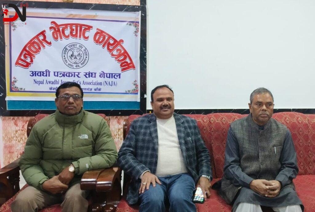 अवधि पत्रकार सङ्घ नेपालका केन्द्रीय अध्यक्ष राकेशकुमार मिश्रको अध्यक्षतामा सम्पन्न पत्रकार सम्मेलनमा जसपा नेपालका केन्द्रिय सचिव एवं नेपालगञ्ज उपमहानगरपालिकाका उपप्रमुख कमरुद्दिन राई, स्थानीय नेतालगायत सञ्चरकर्मीको उपस्थिति थियो ।