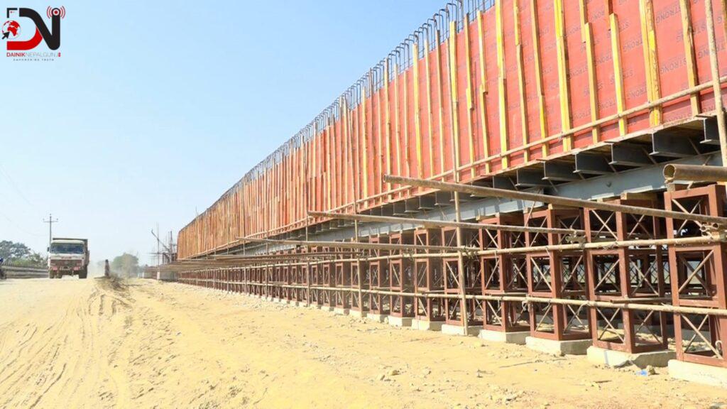 २०७९ असार ५ गते सम्झौता भर्इ २०८३ असार ३ गते सम्पन्न्न गर्ने निर्माण कार्य थालिएको यो पुलको ९० प्रतिशत फाउण्डेसनको कार्य सम्पन्न भैसकेका छ भने बाँकी १० प्रतिशत अन्तरगत राप्तीनदीको बीचमा र छेउमा दुईवटा फाउण्डेसन बनाउने कार्य मात्र बाँकी रहेको निमाण कम्पनी लुम्बिनी रौताहा बन्धन भगवती जेभीले जनाएको छ । कम्पनीका अनुसार तन्काउन मिल्ने ढलानको ६१ मिटरको स्ल्याप बक्स ११ वटा निर्माण गर्नुपर्नेमा यो आर्थिक बर्षमा ५ वटा स्ल्याप बक्स निर्माण सम्पन्न गर्ने लक्ष्य रहेको जनाइएको छ ।