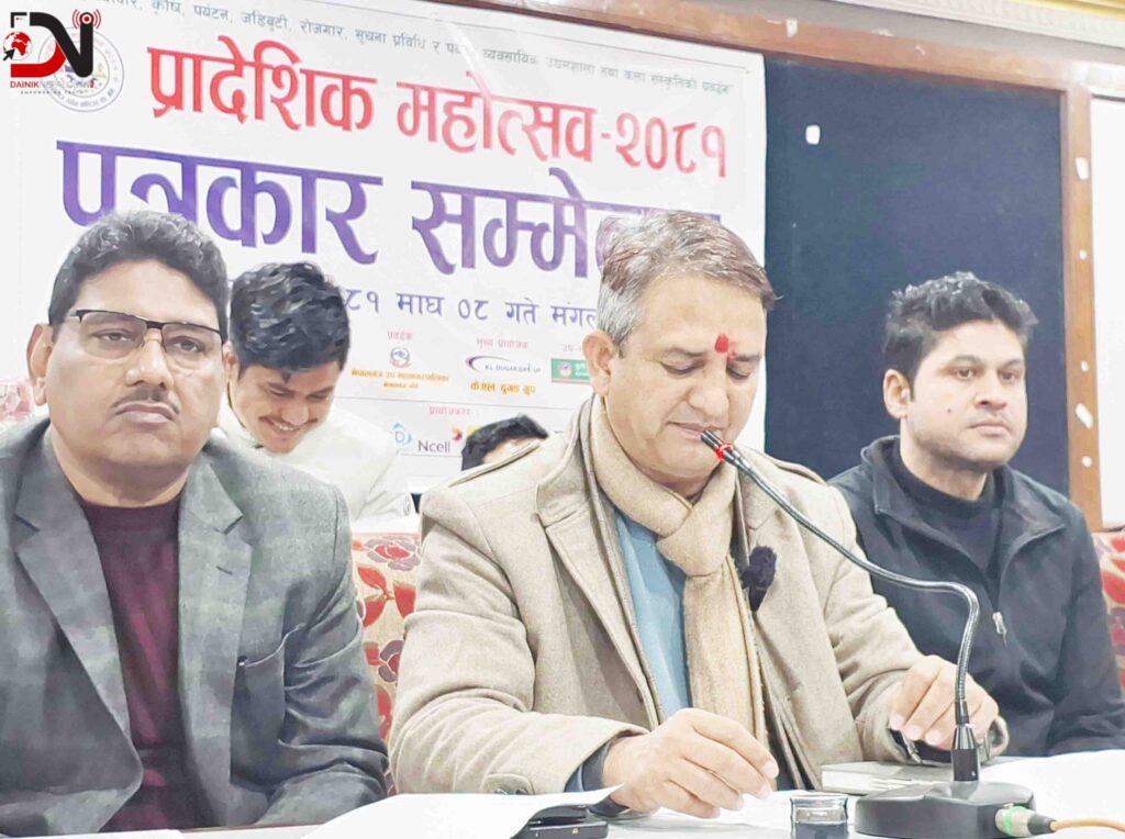 ‘उद्योग, व्यापार, कृषि, जडीबुटी, रोजगार सूचना प्रविधि र पर्यटन, व्यावसायिक उद्यमशाला तथा कलासंस्कृतिको प्रवर्द्धन’ भन्ने मूल नाराका साथ प्रादेशिक महोत्सव आयोजना गरिएको छ”, अध्यक्ष धामीले भन्नुभयो, “महोत्सव करिब तीन लाख बढी दर्शकले प्रत्यक्ष अवलोकन गर्नेछन् ।”