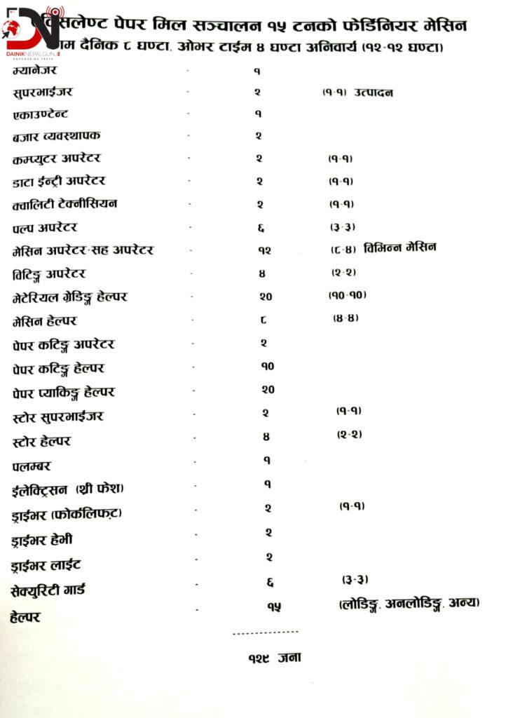 कम्पनीलाई चाहिने १६ विगाहा जग्गा खरिद गरी विभिन्न ५ चरणमा सम्पन्न गर्ने गरी पहिलो चरणमा उत्पादन गरिने रिसाइकल्ड पेपरको लागि आउँदो ६ महिनामा सञ्चालन गर्ने गरी डिपिसिसम्मको निर्माण पुरा भएको छ । हाल दैनिक २ टन पेपर उत्पादन भइरहेको र आउँदो दिनमा दैनिक १५–१५ टन क्षमताको उद्योग स्थापना गरी पेपर उत्पादन गर्ने, कच्चा पदार्थको अनुपात बढाउँदै लैजाने र अन्य कार्य गर्दै जान सहज हुने हुँदा रिसाइकल परियोजना सञ्चालन गर्न लागिएको हो ।