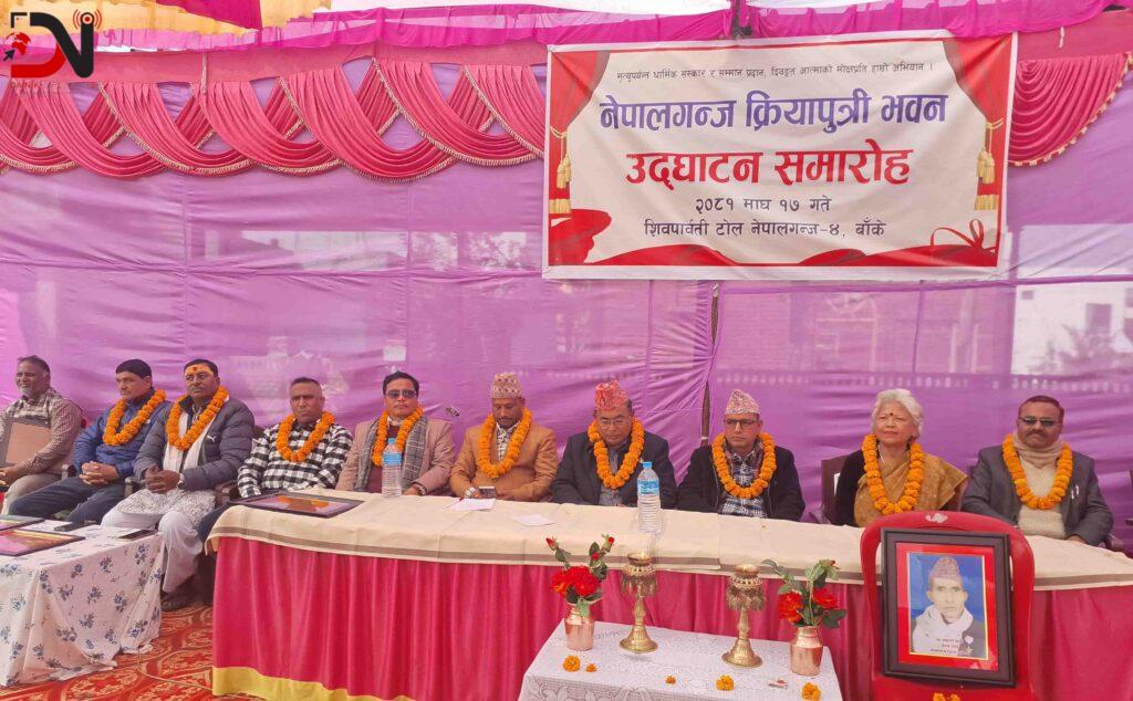 नागरिकस्तरमा पहल लिएर निर्माण गरिएको अत्याधुनिक सुविधासहितको क्रियापुत्री भवनको आज उपमहानगरपालिकाका प्रमुख प्रशान्त विष्टले उद्घाटन गर्नुभयो । सो अवसरमा उहाँले किरियापुत्री भवनले दुःखद कार्यमा परेका नगरवासीलाई सहजता प्राप्त हुने विश्वास व्यक्त गर्नुभयो । उहाँले नेपालगञ्जमा टड्कारो रूपमा किरियापुत्री भवनको आवश्यकता महसुस हुँदै आएकामा सबैको साझा प्रयास र सहभागिताबाट भवन बन्नु सराहनीय कार्य भएको बताउनुभयो ।
