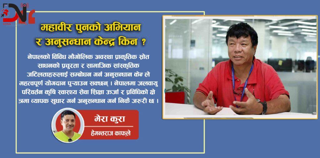 अनुसन्धान केन्द्रहरूले नवप्रवर्तन प्रोत्साहन गर्दै नयाँ प्राविधिक खोज उद्यमशीलता अनि रोजगारीका अवसर सिर्जना गर्न पनि महत्वपूर्ण भूमिका खेल्ने छ । नेपालजस्तो विकासशील देशले विश्वव्यापी प्रतिस्पर्धामा सामेल हुन आफ्नै स्रोत साधनको उचित प्रयोग गर्न र दीर्घकालीन आर्थिक विकासका लागि आत्मनिर्भर बन्न अनुसन्धान केन्द्रको स्थापना अनिवार्य छ । अनुसन्धान केन्द्रको स्थापनाले नेपालमा वैदेशिक निर्भरता घटाउने र राष्ट्रिय पहिचान निर्माणमा योगदान गर्ने छ । नेपालमा अनुसन्धान केन्द्र स्थापना गर्नु देशको प्रगतिका लागि एक महत्त्वपूर्ण कदम हो । नेपालमा अनुसन्धान केन्द्र चाहियो भनेर एक्लो प्रयासमा महाबिर पुन निकै नै लाग्नु भएको छ तर सरकार मौन छ । अनुसन्धान केन्द्र भने पछि महाबिर पुन एक जिउदो ईतिहास हुनुहुन्छ । उहाँको जन्म सन् १९५५ मा म्याग्दी जिल्लाको नाँङि गाउँमा भएको थियो। बाल्यकाल देखि नै उनी ग्रामीण समुदायका समस्याहरूसँग प्रत्यक्ष रूपमा नजिकै बाट समस्याहरू देख्नु भएको थियो । अमेरिकामा उच्च शिक्षा हासिल गरेर पनि स्वदेश फर्किएर ग्रामीण विकासको अभियानमा सक्रिय लागि रहनु भो उहाले सुरुवाती दिनमा म्याग्दीका दुर्गम गाउँहरूमा इन्टरनेट सेवा पु¥याएर प्रविधिको पहुँच देखाउन सफल हुनु भएको थियो । त्यसपछि उहाँले अनुसन्धान केन्द्रको स्थापना गर्ने अभियान सुरु गर्नु भो । यो केन्द्रको लक्ष्य विज्ञान र प्रविधिमा आधारित समाधानमार्फत राष्ट्रलाई आत्मनिर्भर बनाउनु हो । पुनले जनस्तरबाट आर्थिक सहयोग जुटाएर यो अभियानलाई अघि बढाउनु भएको थियो ।