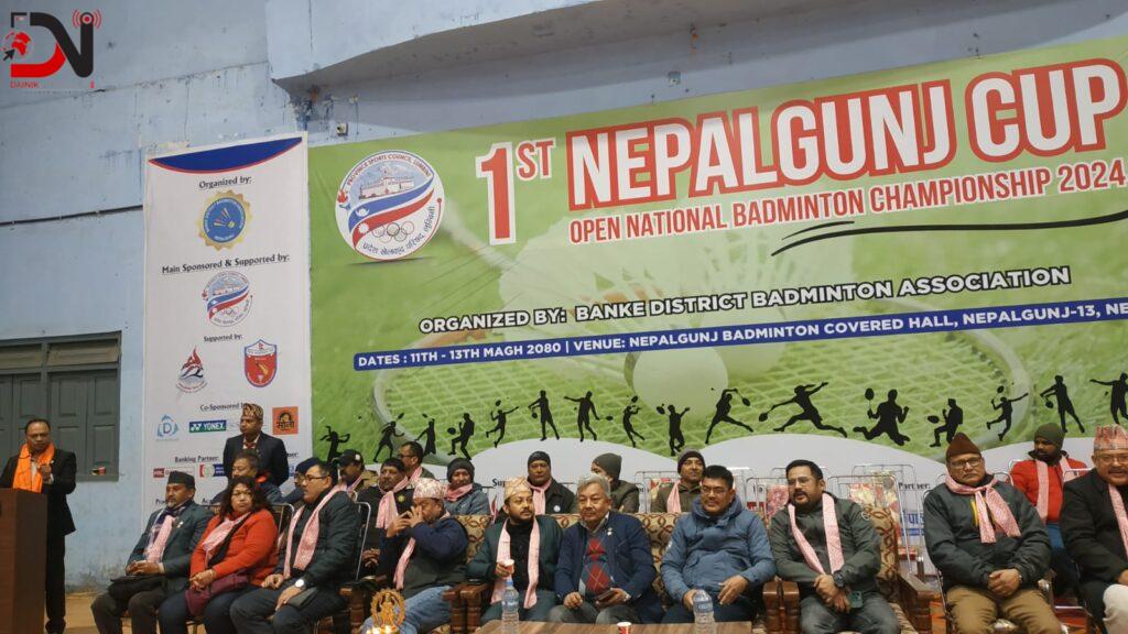नेपालगन्ज । नेपालगन्जमा राष्ट्रिय ब्याडमिन्टन प्रतियोगिता सुरु भएको छ । राष्ट्रिय खेलकुद परिषद् लुम्बिनी प्रदेशका सदस्य सचिव जयप्रकाश भट्टराईले उक्त प्रतियोगिताको उद्घाटन गरे ।
