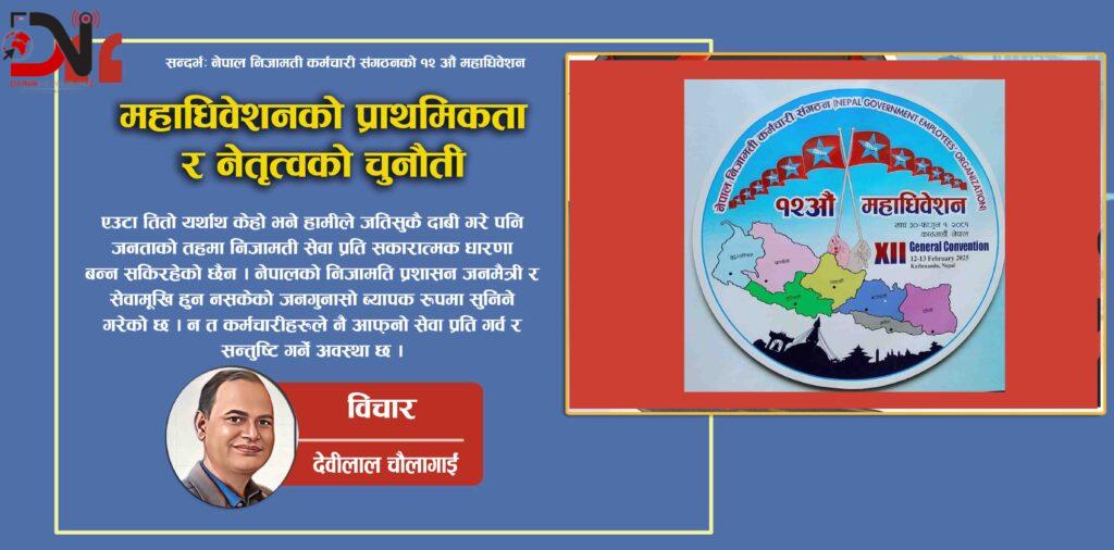 नेपालमा पहिलोपटक २०७३ सालमा सम्पन्न भएको निजामती कर्मचारीहरूको आधिकारिक ट्रेड यूनियनको निर्वाचनमा यो संगठनले करिब दुई तिहाई स्थानमा विजय प्राप्त गरेको थियो । केन्द्र र जिल्लाको आधिकारिक ट्रेड यूनियनमा अग्रस्थानमा रहेको नेपाल निजामती कर्मचारी संगठनको यो महाधिवेशनलाई सबैले अत्यन्त गम्भिरता र चासो पूर्वक हेरेका छन् । नेपालको निजामती क्षेत्रको सबैभन्दा ठुलो संगठनको महाधिवेशनले तय गर्ने नीति तथा कार्यक्रमले नेपालको सिंगो निजामती प्रशासनलाई समेत यसले प्रभाव पार्नेछ । तर मुख्य कुरा यो महाधिवेशन कुन विषयमा केन्द्रित हुन्छ र कस्तो नीति एवं कार्यदिशा तय गर्छ भन्ने हो । यो १२ औँ महाधिवेशन परम्पराको निरन्तरता मात्र हुन्छ कि बदलिँदो राज्यको ब्यवस्था र बदलिँदो नागरिक अपेक्षा अनुसारको रूपान्तरणका विषयमा छलफल, बहस र निष्कर्षमा पनि पुग्छ, त्यो भने हेर्न बाँकी नै छ ।