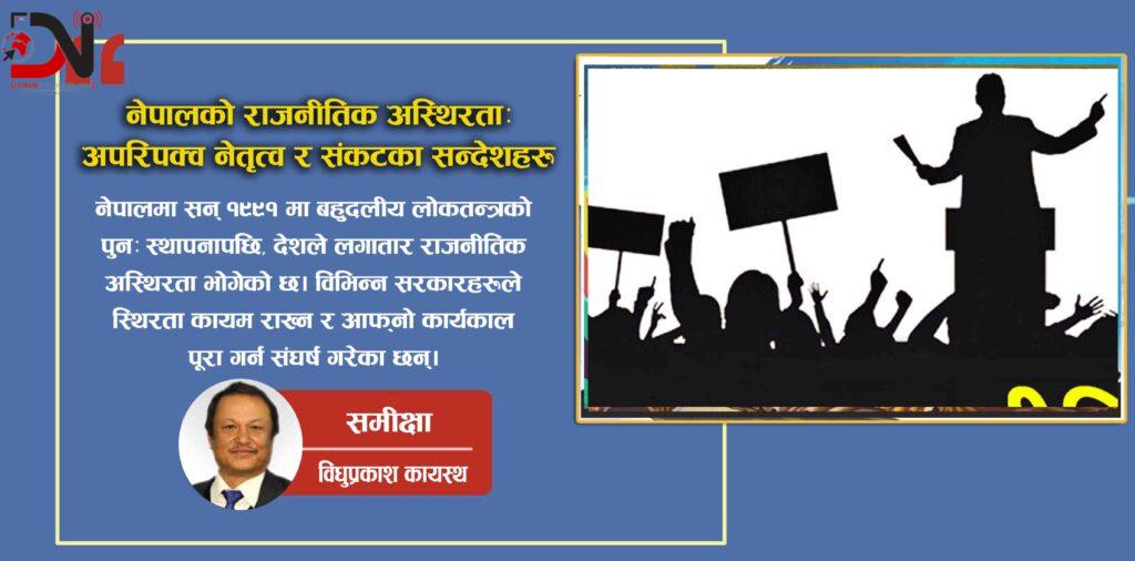 नेपालमा १९९१ मा बहुदलीय लोकतन्त्रको पुनःस्थापनापछि, देशले राजनीतिक अस्थिरता भोगेको छ। विभिन्न सरकारहरूले स्थिरता कायम राख्न र आफ्नो कार्यकाल पूरा गर्न असफल संघर्ष गरेका छन्। विभिन्न पार्टीहरूले संसदमा बहुमत वा अल्पमत प्राप्त गरे तापनि राजनीतिक संकट, गठबन्धनको विघटन र बदलिंदो समर्थनको कारणले नेतृत्वको बारम्बार परिवर्तन भएको छ।