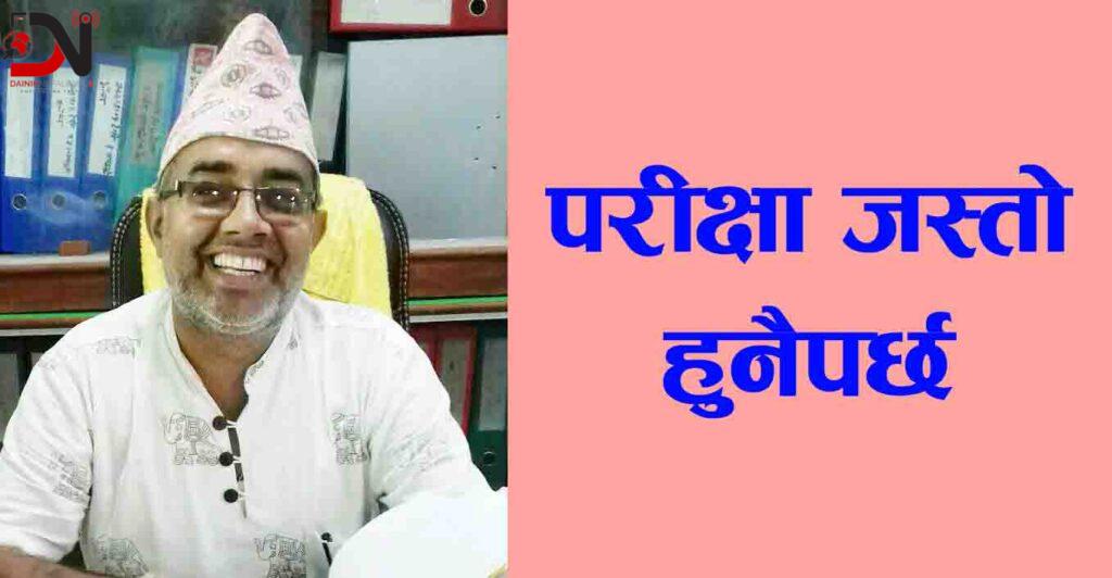 तर के हाम्रा विद्यालयहरूका परीक्षा र यसका नतिजाले विद्यार्थीहरूको सहि मूल्याङ्कन गरेको छ त ? सम्बन्धित सबैलाई प्रश्न गर्न मिल्छ कि मिल्दैन ? हाम्रा बोर्ड परीक्षाहरूको अवस्था त बिहारको बोर्ड परीक्षा जस्तो भैसकेको छ । हामीहरू बर्षभरि झारा टार्ने, विद्यालयका जिम्मेवार