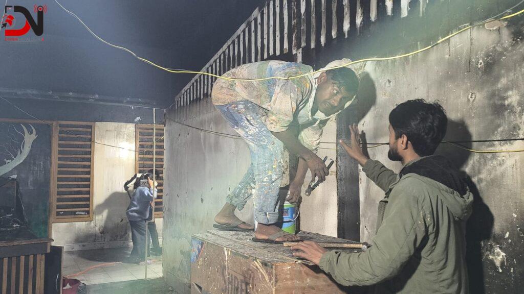शनिबार एकाविहानै आगलागीबाट क्षतिग्रस्त भएको सुर्खेतरोड धम्बोझी स्थित रोयल क्याफे तत्कालैबाट पुनर्निर्माण सुरु गरिएको छ । शनिबार एकाबिहानै विद्युत सट् हुँदा आगलागी भएपछि नजिकैको भवनमा सुरक्षा गार्डले थाहा पाएर धम्बोझी चोकमा तैनाथ प्रहरीलाई सूचना दिएका