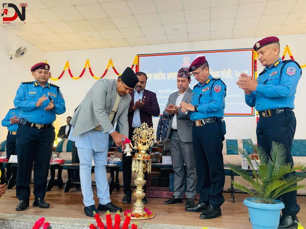 बुटवलस्थित लुम्बिनी प्रदेश प्रहरी तालिम केन्द्रमा आयोजित प्रदेशस्तरीय अपराध अनुसन्धान समीक्षा गोष्ठीको आज उद्घाटन गर्नुहुदै मुख्यमन्त्री आचार्यले नेपाल प्रहरी अपराध अनुसन्धानका क्षेत्रमा अब्बल भए पनि केही घटनामा परिणाम आउन नसकेको हुनसक्ने तथापि, अधिकांश अपराध अनुसन्धानमा नेपाल प्रहरीले प्रभावकारी नतिजा ल्याएको उहाँले उल्लेख गर्नुभयो ।