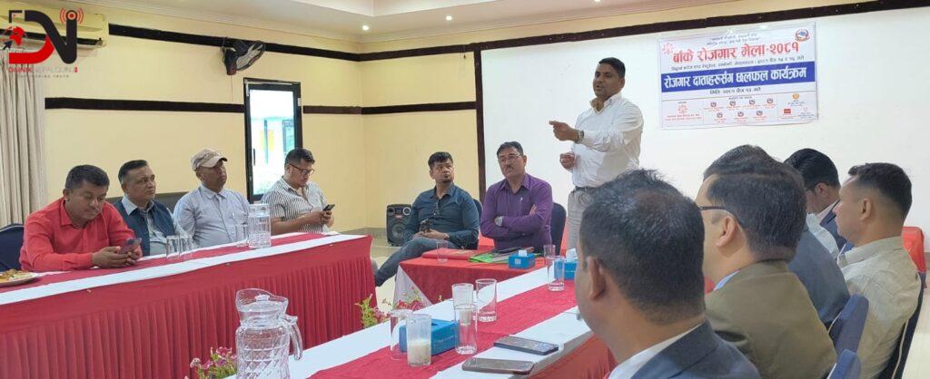 मेला परामर्शदाता, विज्ञ सरोज चौधरीले सहजीकरण गरेको छलफलमा रोजगारका विविध पक्षमा अनुसन्धान गरिरहेका विज्ञ हरी सुवेदीले रोजगारीका क्षेत्रमा विभिन्न आयाम राखेका थिए । ‘रोजगारदाताहरूलाई एकै ठाउँ राखेर समस्या र सम्भावनाबारे छलफल गरिएको हो,’ मेला संयोजक रानाभाटले दैनिक नेपालगन्जसँग भने, ‘त्यसअघि उद्योग व्यवसायमै पुगेर छुट्टाछुट्टै छलफल पनि गरिरहेका छौं ।’