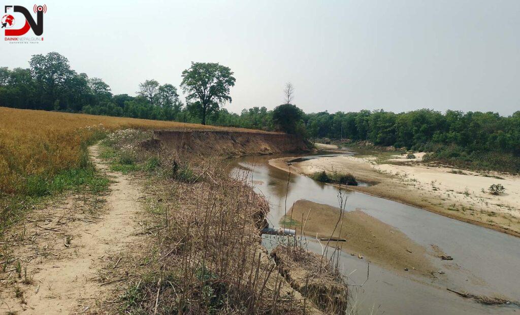 खजुरा गाउँपालिका-२ गौघाटस्थित राष्ट्रिय पशु प्रजनन कार्यालयको खेतीयोग्य जमिन मानखोलाको कटानमा पर्दै आएको छ ।