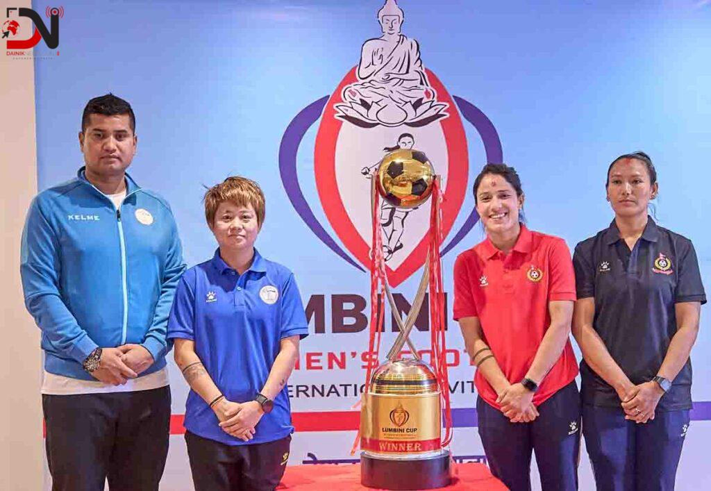 अन्तराष्ट्रिय आमन्त्रण लुम्बिनी कपको उपाधी एपीएफ क्लब र नेपाल पुलिस क्लब दुबै टिमले जित्ने दाबी गरेका छन । नेपालगन्जमा आज पत्रकारहरु संग कुराकानी गर्दे एपीएफ क्लबका कोच भगवती थापाले आफूहरुलाई खेल जित्नै पर्ने दबाब रहेको बताएकी छिन । उनले प्रतिस्पर्धीलाई कमजोर ठान्न नहुने बताउदै नतिजा आफूहरुले जित्ने दाबी गरेकी हुन । यस्तै क्याप्टेन अनिता बस्नेतले खेल रोमाञ्चक हुने बताउँदै आफूहरु जित्नको लागि खेल्न लागेको प्रतिक्रिया दिएकी छिन । नेपालगन्जमा भएको यो प्रतियोगिताले महिला खेलाडीलाई मात्र नभई समग्र खेलप्रेमीहरुलाई हौसला जगाएको उनले बताएकी छिन ।