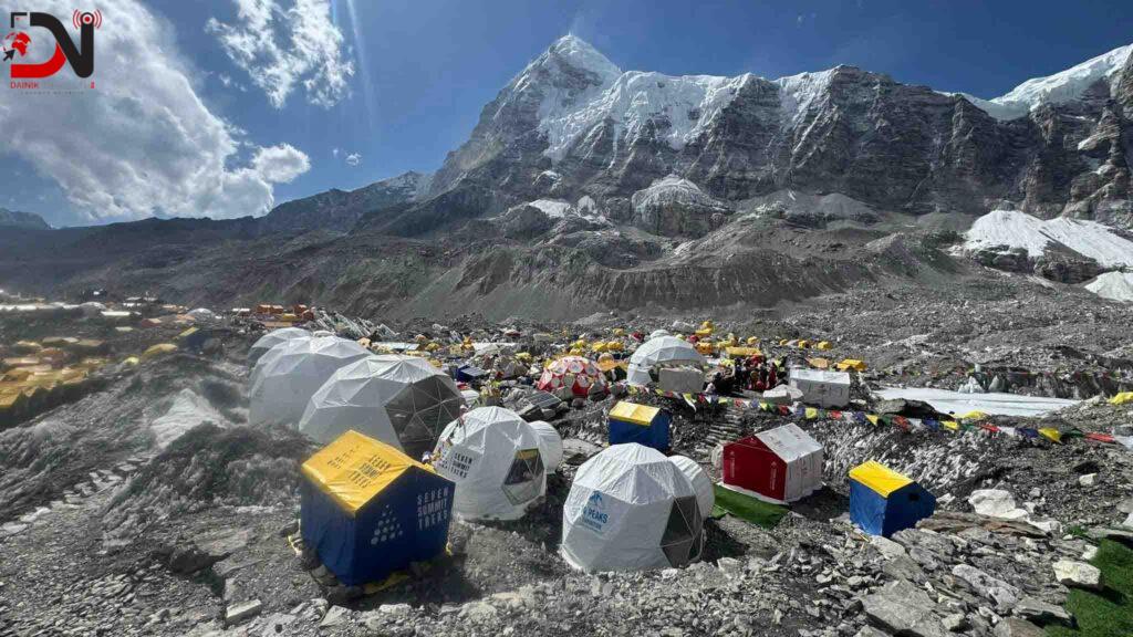समुद्री सतहबाट पाँच हजार ३६४ मिटर उचाइमा रहेको आधारशिविर क्षेत्रमा ‘लाउन्ड्री’, ‘क्याफे’, ‘बार’ आदिको व्यवस्थापन गरिएको छ । पाँच सय भन्दा बढी पाल टाँगिएका छन् । आरोही, सहयोगी, कुक, किचन हेल्पर गरी एक हजार तीन सयभन्दा बढी आधार शिविरमा छन् । एटके एक्सपीडिसन कम्पनीका प्रबन्ध निर्देशक लाक्पा शेर्पाले विभिन्न कम्पनीले आरोहीको खाना तथा बास व्यवस्थापनका लागि बनाइएका रङ्गी विरङ्गी पालका सजावटले आधारशिविर रमाइलो देखिएको बताउनुभयो ।