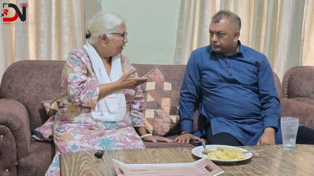केही वेर पछि कांग्रेस बाँकेका सभापति नारायण गौडेल लगायत सँगै महामन्त्री थापा कोइराला निवासको आँगनमा आइपुगे। शिष्टाचार भेट पछि छेउमै भएको बैठक कोठा भित्र जान कोइरालाले आग्रह गरेपछि सवैजना भित्र प्रवेश गरे।