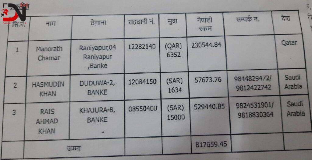 चमारको दुई लाख ३० हजार पाँच सय ४४, हस्मुदिनको ५७ हजार ६ सय ७३ र रइसको पाँच लाख २९ हजार चार सय ४० रुपैयाँ आएको बाँकेका प्रमुख जिल्ला अधिकारी श्रवणकुमार पोखरेलले जनाए । क्षतिपूर्ति र बाँकी तलबवापतको पैसा लिन निज र वा निजको नजिकको हकदारलाई जानकरी गराउन सबैमा अपीलसमेत गरेका छन् ।