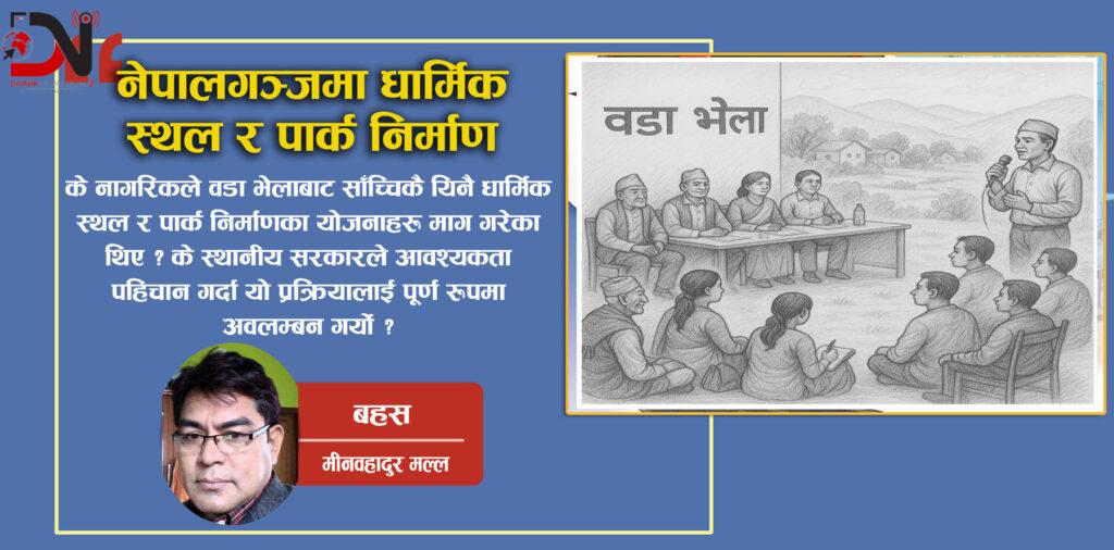 कुनै समय राज्यको बजेट मन्दिर, मस्जिद र चर्चजस्ता धार्मिक स्थलहरूमा लगानी गर्न निषेध गरिएको थियो। तर अहिले परिस्थिति फेरिएको छ। नेपालगञ्ज क्षेत्रमा धमाधम मठ, मन्दिर, मस्जिद र पार्कहरू निर्माण भइरहेका छन्। यसलाई कतिपयले सकारात्मक रूपमा लिए पनि, यसले नेपालको विकास मोडेल र जनसहभागिताको सिद्धान्त माथि गम्भीर प्रश्नहरू खडा गरेको छ।