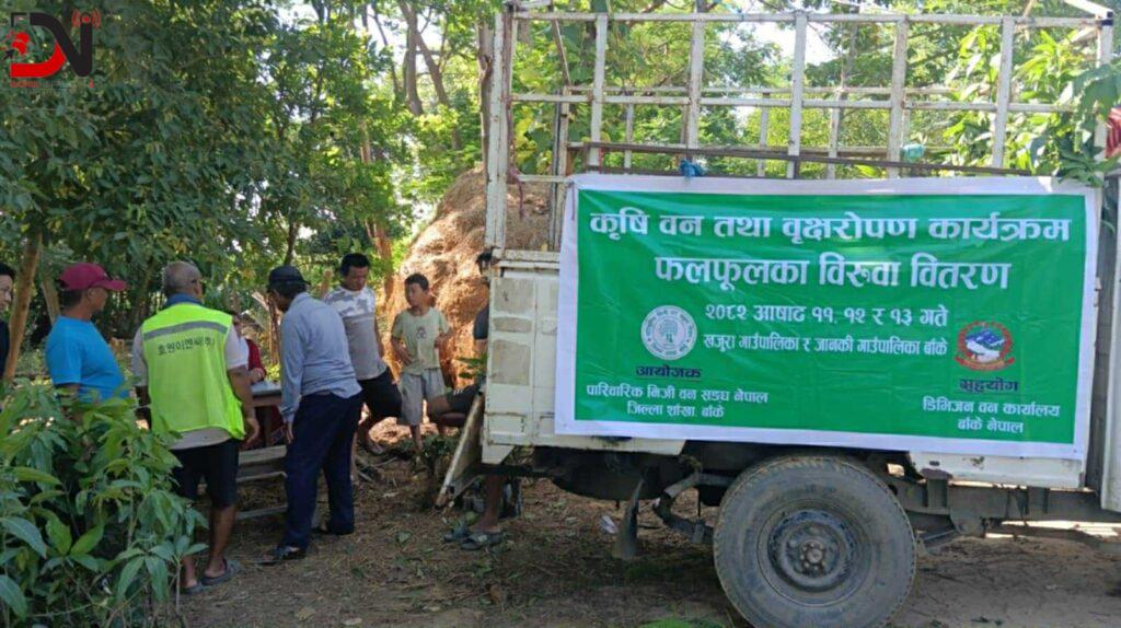 पारिवारिक निजी वन संघ नेपाल, जिल्ला शाखा बाँकेका अध्यक्ष सुनील घिमिरेले आँप, लिची, कटहर, अम्बा लगायतका फलफूलका बिरुवा वितरण गरिएको जानकारी दिए । उनका अनुसार, यी बिरुवाहरूले आगामी दिनमा बाँकेको भूमिलाई अझ हरियाली बनाउन र किसानहरूको जीवनमा समृद्धि ल्याउन मद्दत गर्नेछन् ।
