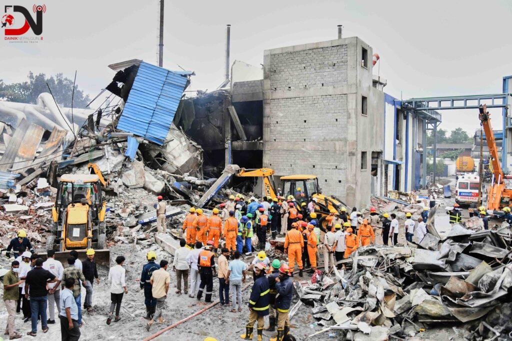 राज्यको राजधानी हैदराबादबाट करिब ५० किलोमिटर (३१ माइल) टाढाको औद्योगिक क्षेत्रमा भएको दुर्घटना स्थलबाट दमकलकर्मीहरूले ३४ जना कामदारका जलेका शवहरू फेला पारेको राज्यका दमकल सेवा निर्देशक जी.भी. नारायण रावले बताउनुभयो ।