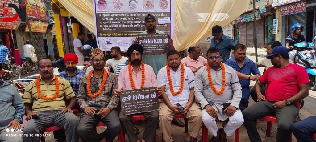 नेपालगन्ज सुनचाँदी व्यवसायी महासंघका महासचिव सुखनारायण सोनारले बुधबारबाट रिले अनसन सुरु गरेको र अनिश्चितकालीन व्यवसाय बन्द गरिएको बताएका छन् ।