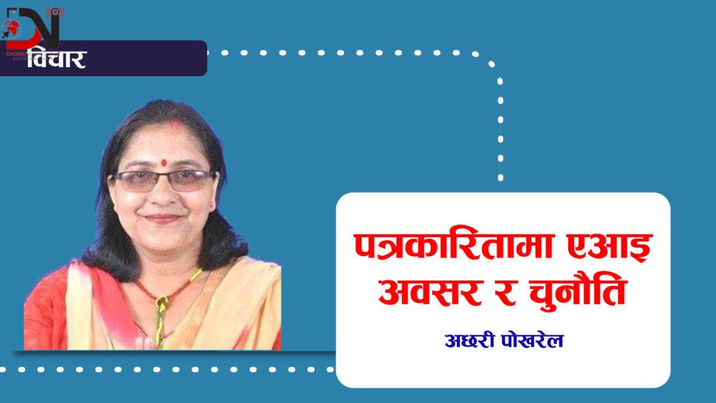 झट्ट हेर्दा के हो त एआइ ? मेरो बुझाइमा सरल भाषमा भन्नुपर्दा एआइ भनेको मानिसले जस्तैे बोलेर वा लेखेर काम गर्ने एउटा माध्यम हो । यसले पत्रकारितामा चमत्कार पनि ल्याएको छ । मानिसलाइ घण्टौ पढेर निकाल्नु पर्ने साराशं एक छिनमा निकालिदिन्छ,मानिसलाइ कुनै पनि प्रतिवेदन बनाउनु छ भने दिइएको जानकारीका आधारमा प्रतिवेदन तुरुन्तै बनाइदिन्छ । समाचार वा लेख यो विषयमा तयार गर भनेर निर्देशन दिने हो भने उसल समाचार वा फिचल, लेख ,काविता तयार गरीदिन्छ । भाषामा पनि उत्तिकेै काम गर्दछ । नेपालीमा दिइएको सामाग्री अग्रेंजीमा, र अग्रेजीको सामाग्री नेपालीमा अनुवाद गर्न मानिसलाइ घण्टौ मेहनत गर्नुुु पर्दछ उस्ले एक सेकेण्डमा गरी दिन्छ । यो एआका कारण कतिपय अनुवादकको रोजगारी पनि खोसीएको छ र भाषा अनुवाद गर्ने मानिसको आवश्यकता नै नपर्ने भएको छ । यसकारण यो प्रविधिले नयाँ नयाँ कुराासिकाएको छ । संचार माध्यममा रीपोटरले गर्ने काम हाल एआइको प्रयोगले गरेको छ । समाचार लेख्न रिपोटर नै न चाहिने भएको छ । २,३ जना रिपोटर राखेर मिडियामा समाचार उत्पादन गर्दथ्ये भने हाल एआइको प्रयोगले गर्दा २,३ जना रिपोटरले गर्ने काम उसले एक्लेै मिनेट भरमा गरीदिन्छ । त्यसले गर्दा रिपोटर पाल्नु पर्ने बाध्यता सबै हट्यो । यसलाइ बर्षको १ सय रूपैया तिरेर दर्ता गरे पुग्छ । यो विषयमा फिचर लेख भने लेखिदिन्छ, यो बिषयमा समाचार लेख भन्दा लेखिदिन्छ । यसरी एआइलाइ पत्रकारितामा प्रयोग गर्न सजिलो भएको छ । पत्रकारलाइ हप्तौ लाग्ने सुचना ए आइले छिन भरमा पत्ता लगाई दिन्छ । अनि भएन त पत्रकारीतामा सजिलो । केहि समय पहिला समाजिक संजालमा भइरल भएको एउटा नगरपालिकाको साधारण सभामा एक जना पत्रकारले साधारण सभाको बन्दसत्रमा म पत्रकार हु मलाइ जान दिनु पर्छ भनेर खिचेको भिडियो आश्चर्य लागेपछि कुन ठाउँको होला भनी एआइलाइ सोध्दा त्यो भिडियो मधेश प्रदेशको एक नगरपालिकाको रहेको खुलेको थियो । यसरी पत्रकारलाइ कुनै पनि क्षेत्रको डाटा लिन कठिन भयो भने एआइलाइ सोध्ने हो भने यसले एकछिनमा भनि दिन्छ । यसलाइ सोधेको पश्नको यसले तुरुन्तै उत्तर दिइहाल्छ ।