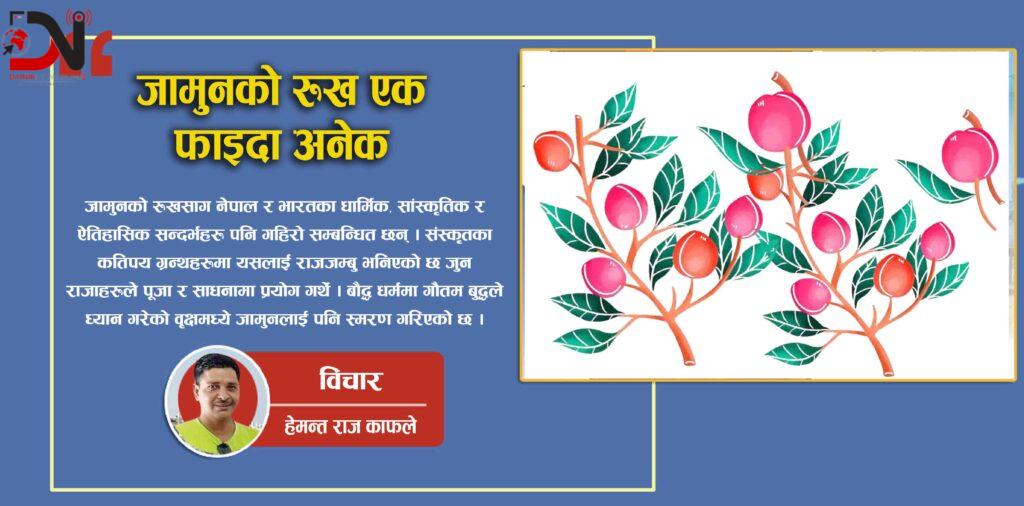 आजको आधुनिक युगमा जब मानव स्वास्थ्य वातावरण र परम्परागत ज्ञान संकटमा परेका छन् त्यस्तो अवस्थामा जामुनजस्ता वृक्षहरू समाधानका स्थायी आधार हुन् । नेपालमा औषधीय बनस्पतिको सम्भावना प्रचुर भए पनि हामीले व्यावसायिक र वैज्ञानिक ढंगले यसको सदुपयोग गर्न सकेका छैनौँ । जामुनको बीउ, फल, बोक्रा, पात र काठ सबै बेचबिखन हुन्छ्न । यसको खेतीबाट ग्रामिण उद्यमशीलता रोजगारी र जैविक कृषि प्रवद्र्धन गर्न सकिन्छ । यसबाहेक यसको जुस सिरप, अचार, औषधि उत्पादन, साबुन वा फेसक्रिम निर्माणमा पनि आधुनिक प्रयोग हुन थालेको छ । नेपालमा सरकारी तवरबाट जामुनको वृक्षारोपणलाई प्राथमिकता दिइनु आवश्यक छ । विद्यालय स्तरबाट नै एक विद्यार्थी, एक जामुन जस्ता अभियान थालेर विद्यार्थीहरूमा प्रकृति प्रेमको भावना रोप्न सकिन्छ । स्थानीय तह, नगरपालिकाहरूले सार्वजनिक स्थलहरूमा जामुन रुख रोपेर हरियाली र वातावरण सन्तुलनमा योगदान गर्न सक्छन् । दीर्घकालीन दृष्टिकोणले जामुन जस्ता बहुपयोगी रुखहरूको संरक्षण र प्रवद्र्धन गर्नु भनेको भविष्यका पुस्ताका लागि स्वास्थ्य, हरियाली र आत्मनिर्भरता निर्माण गर्नु हो । यदि हामीले जामुनको रुखलाई केवल फल दिनेलाई सीमित नगरी यसको जीवन्त दर्शनलाई आत्मसात गर्न सक्यौँ भने, हामी प्रकृतिसँगको गहिरो सम्बन्ध पुन स्थापित गर्न सफल हुनेछौँ ।