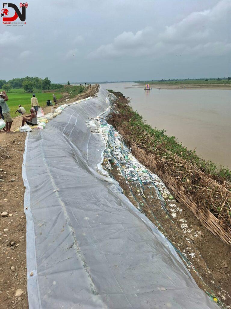 आपत्कालीन तटबन्धका कारण राप्ती नदीले धार परिवर्तन गरेकाले तत्काललाई जोखिम टरेको हो । यसले तटीय क्षेत्रका गाउँबस्तीमा राहत मिलेको छ । दुई वर्षअघि राप्ती नदीमा आएको बाढीले पक्की तटबन्ध बगाएपछि बजेट अभाव देखाउँदै नयाँ तटबन्ध निर्माण हुन सकेको थिएन । जसले गर्दा वरिपरिका करिब एक दर्जन गाउँबस्ती डुबानको उच्च जोखिममा थिए ।