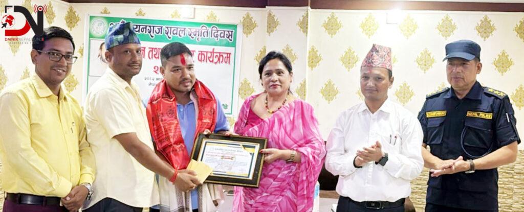 कार्यक्रममा बोल्दै कार्यक्रमका प्रमुख अतिथि नेपालगन्जका नगरप्रमुख बिष्टले लागु औषध बिरुद्धका अभियन्ताको सम्झनामा स्थापित पुरस्कार हरेक बर्ष असल व्यक्तिलाई प्रदान गरिदै आएको उल्लेख गर्दै संस्थालाई धन्यवाद ज्ञापन गरे ।