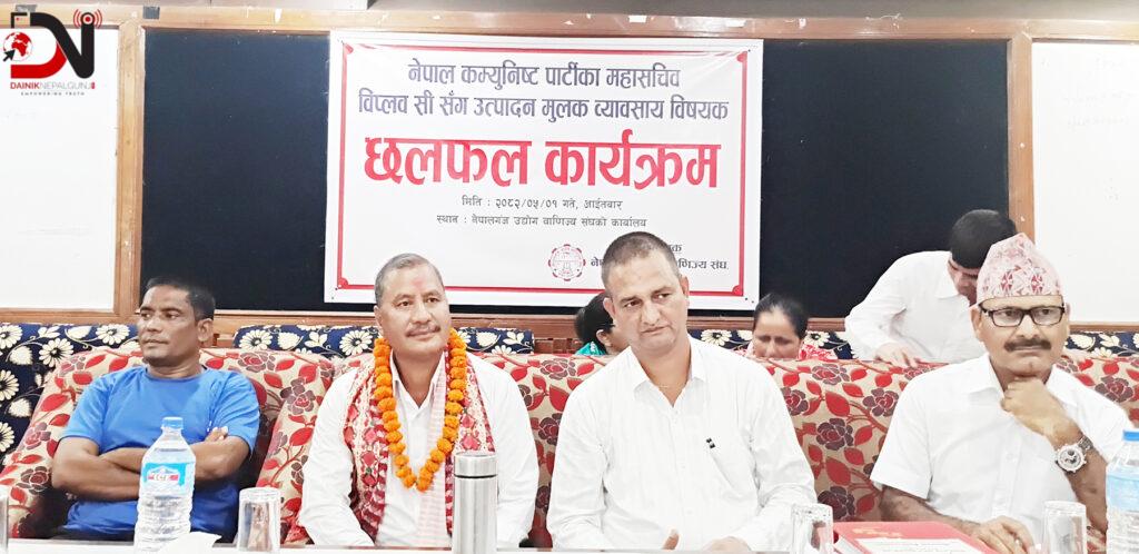 कार्यक्रममा स्वागत गर्दै नेपालगन्ज उद्योग वाणिज्य संघका अध्यक्ष टंक धामीले संघले नेपालगन्ज–दिल्ली उडानका लागि पहल गरिरहेको जानकारी दिंदै नेकपाको पनि समर्थन चाहेको बताएका थिए । अध्यक्ष धामीले नेकपा कृषिमा जोडिएकोमा प्रशंसा पनि गरेका थिए । संघ अध्यक्ष धामीले राखेको नेपालगन्ज–दिल्ली उडानको विषयलाई नेकपाले पूर्ण समर्थन गर्ने महासचिव विप्लवले बताएका थिए । ‘त्यसका लागि सम्बन्धित निकायमा नेकपाले पहल गर्नेछ’, उनले भने ।
