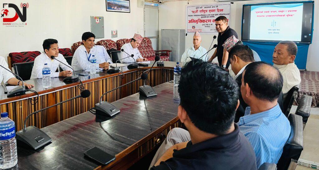 सूचनाको हकका लागि राष्ट्रिय महासंघ लुम्विनी प्रदेश संयोजक हेमन्त कर्माचार्यले सूचनाको हक नागरिकका लागि महत्वपुर्ण हतियार भएकाले सुशासन र पारदर्शिताका लागि यसको प्रयोग तथा कार्यन्वयनमा जोड दिनुभयो ।