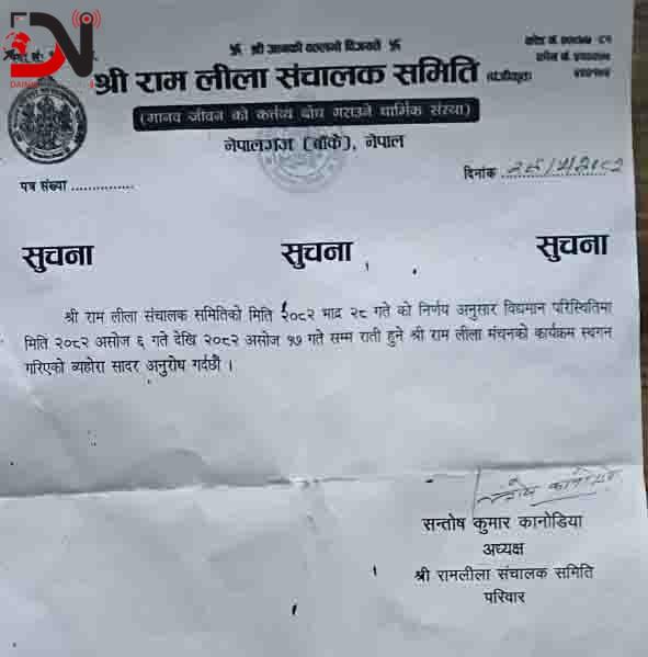 हरेक बर्ष नेपालगन्जको रामलीला मैदानमा हुने रामलीला यस बर्ष नहुने भएको छ ।