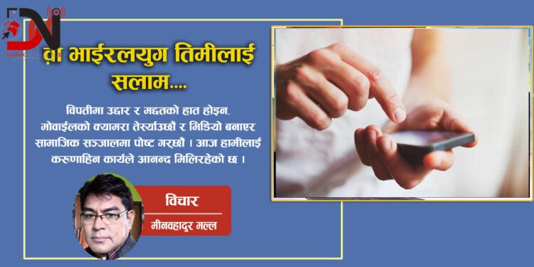 विपतीमा उद्दार र मद्दतको हात होइन, मोवाईलको क्यामरा तेस्र्याउछौं र भिडियो बनाएर सामाजिक सञ्जालमा पोष्ट गर्छौं । आज हामीलाई करुणाहिन कार्यले आनन्द मिलिरहेको छ ।