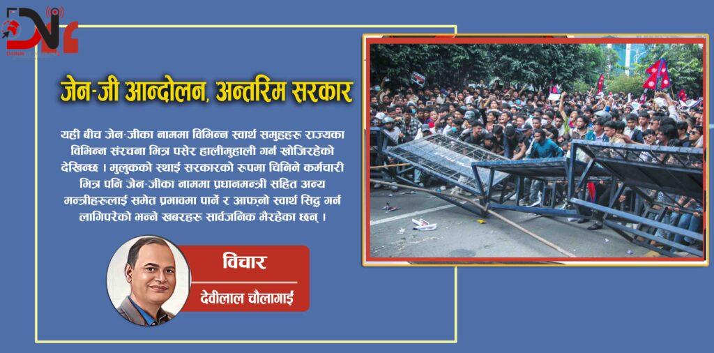 यही बीच जेन–जीका नाममा विभिन्न स्वार्थ समुहहरू राज्यका विभिन्न संरचना भित्र पसेर हालीमुहाली गर्न खोजिरहेको देखिन्छ । मुलुकको स्थाई सरकारको रूपमा चिनिने कर्मचारी भित्र पनि जेन–जीका नाममा प्रधानमन्त्री सहित अन्य मन्त्रीहरूलाई समेत प्रभावमा पार्ने र आफ्नो स्वार्थ सिद्ध गर्न लागिपरेको भन्ने खबरहरू सार्वजनिक भैरहेका छन् । अलि बढी नै प्रभाव पार्न र हस्तक्षेप गर्न खोजेपछि संघीय मामिला तथा सामान्य प्रशासन मन्त्रलाय सम्हाल्नु भएका पुर्व अर्थ सचिव समेत रहनु भएका रामेश्वर खनालले विज्ञप्ति नै निकालेर कर्मचारीहरू सेवा प्रवाहमा लाग्न र अनावश्यक कसैलाई पनि दुख दिने र कर्मचारीको मनोबल घटाउने गरि गतिविधि नगर्न सचेत गराउनु भएको छ । यसैबाट प्रष्ट हुन्छ कि, त्यो शक्ति कसरी र कुन तहबाट लागिपरेको रहेछ भन्ने कुरा । मन्त्रीले नै विज्ञप्ति निकालेर सचेत गर्नुपर्ने तहसम्म पुग्नु भनेको चानचुने कुरा हैन । उक्त समुहले मुख्य सचिव, गृह सचिव, संघीय संसदका महासचिव, सर्वोच्च अदालतका मुख्य रजिष्ट्रार लगायतका उच्च तह देखि अन्य कर्मचारीहरूको राजिनामा र बर्खास्तगी सम्मको माग राखेको कुरा सार्वजनिक नै भएको छ ।